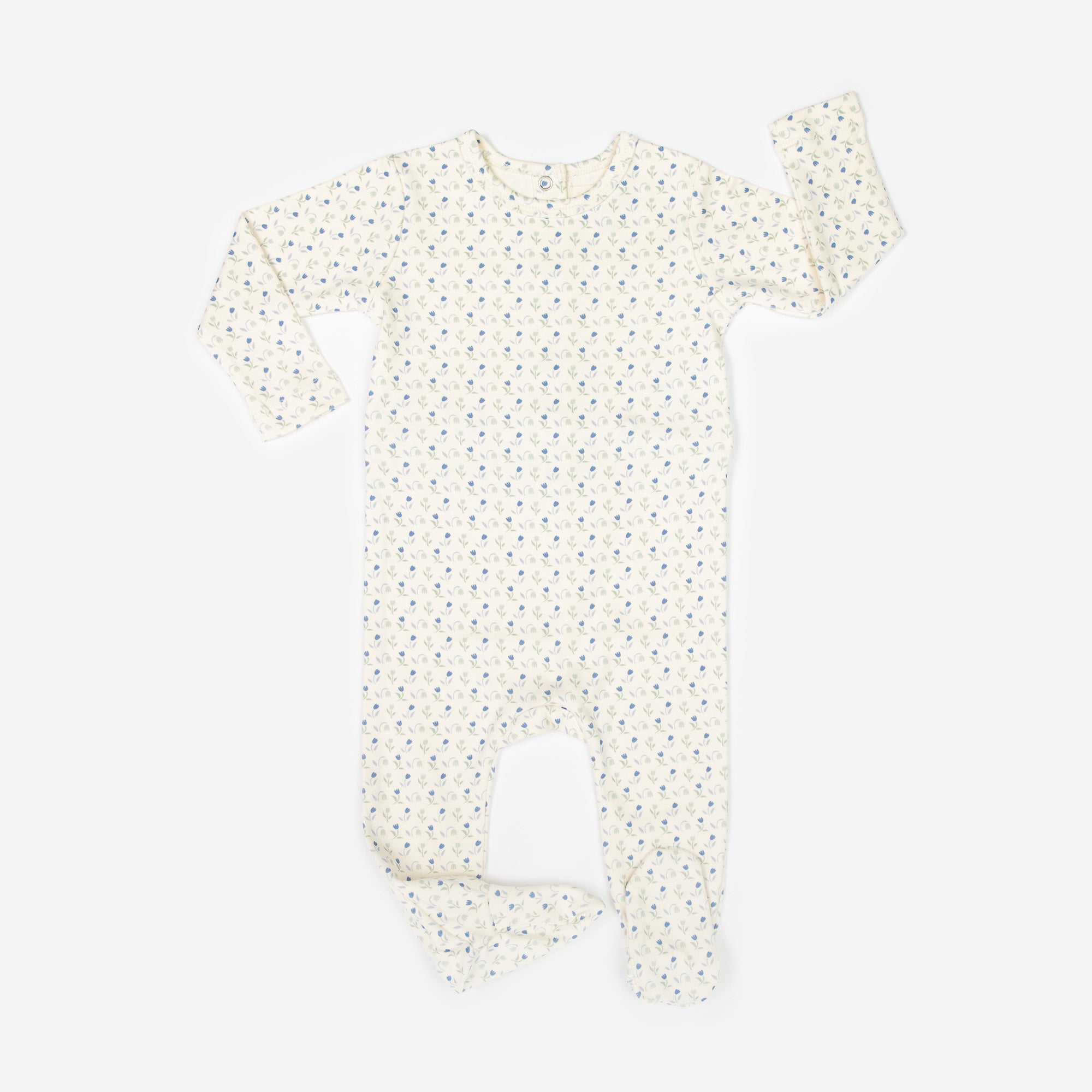 This adorable footie features a delightful tulip design, perfect for keeping your little one cozy and cute. Crafted from soft, breathable fabric, it ensures gentle warmth and ease of movement, making it an ideal choice for playtime or naptime. Embrace the sweetness of childhood with this lovely addition to your baby's wardrobe!